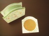 table mats and stands (4pcs a set)DH7128-4 Materials:MDF, Cork Usage: A necessary tableware The size of mat:8.9*9.5*0.4cm Diameter :6.8cm The size of stand:11*10.6*3.7cm